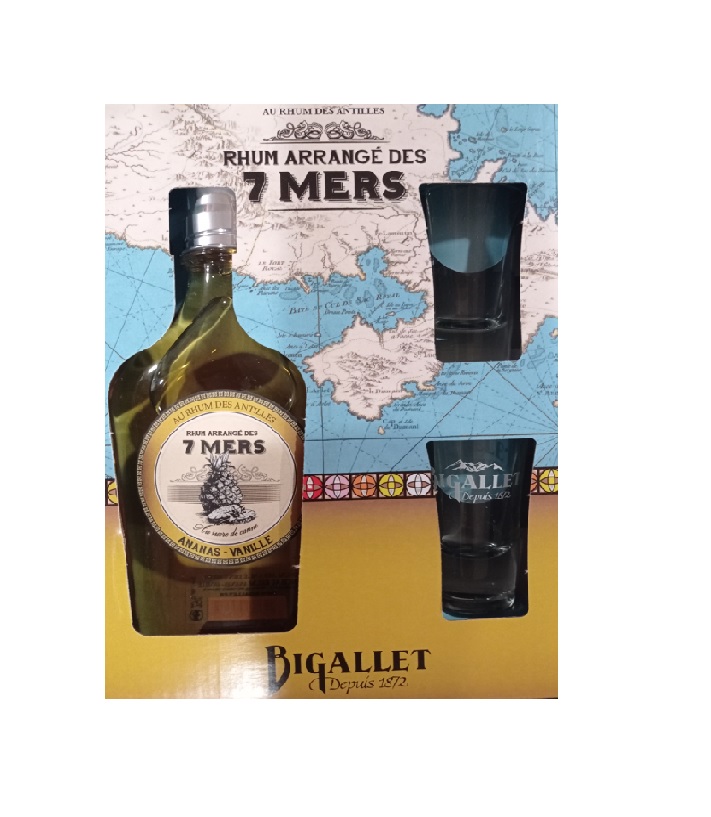 Vous recherchez une idée pour vos cadeaux de Noël? Optez pour un coffret de rhum arrangé Ananas-Vanille avec 2 verres à shooter de chez Bigallet disponible dans votre épicerie du restaurant Instants Partagés à Echirolles.